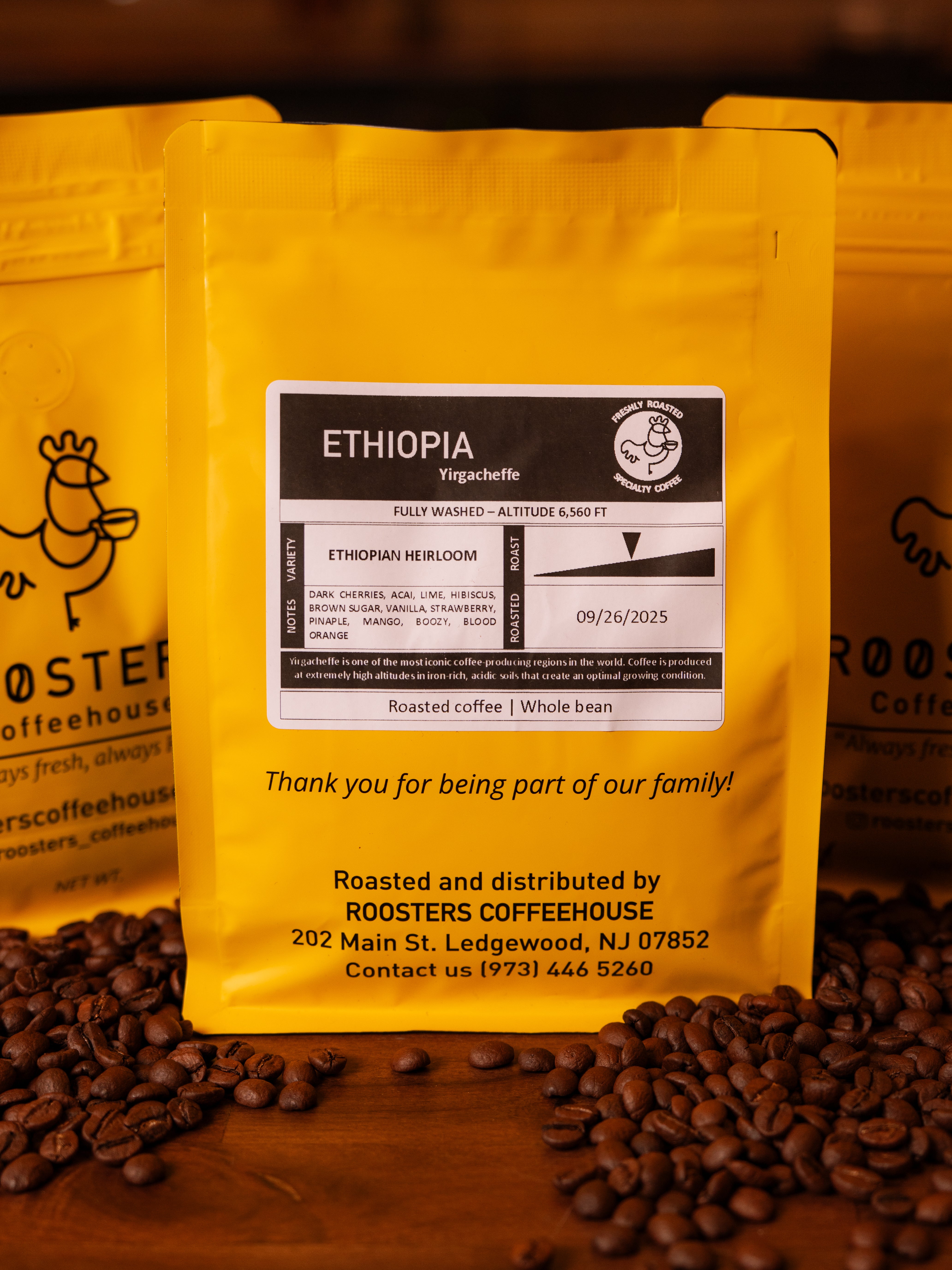 From the birthplace of coffee, this heirloom varietal from Yirgacheffe delivers a cup as vibrant as its highland origin. Grown at soaring altitudes  and naturally processed, it reveals a fragrant bouquet of jasmine and bergamot, with bright citrus acidity and layers of sweet stone fruit. Elegant and complex, Yirgacheffe is celebrated worldwide as one of the finest expressions of Ethiopian coffee — best enjoyed as a pour-over to highlight its floral clarity.