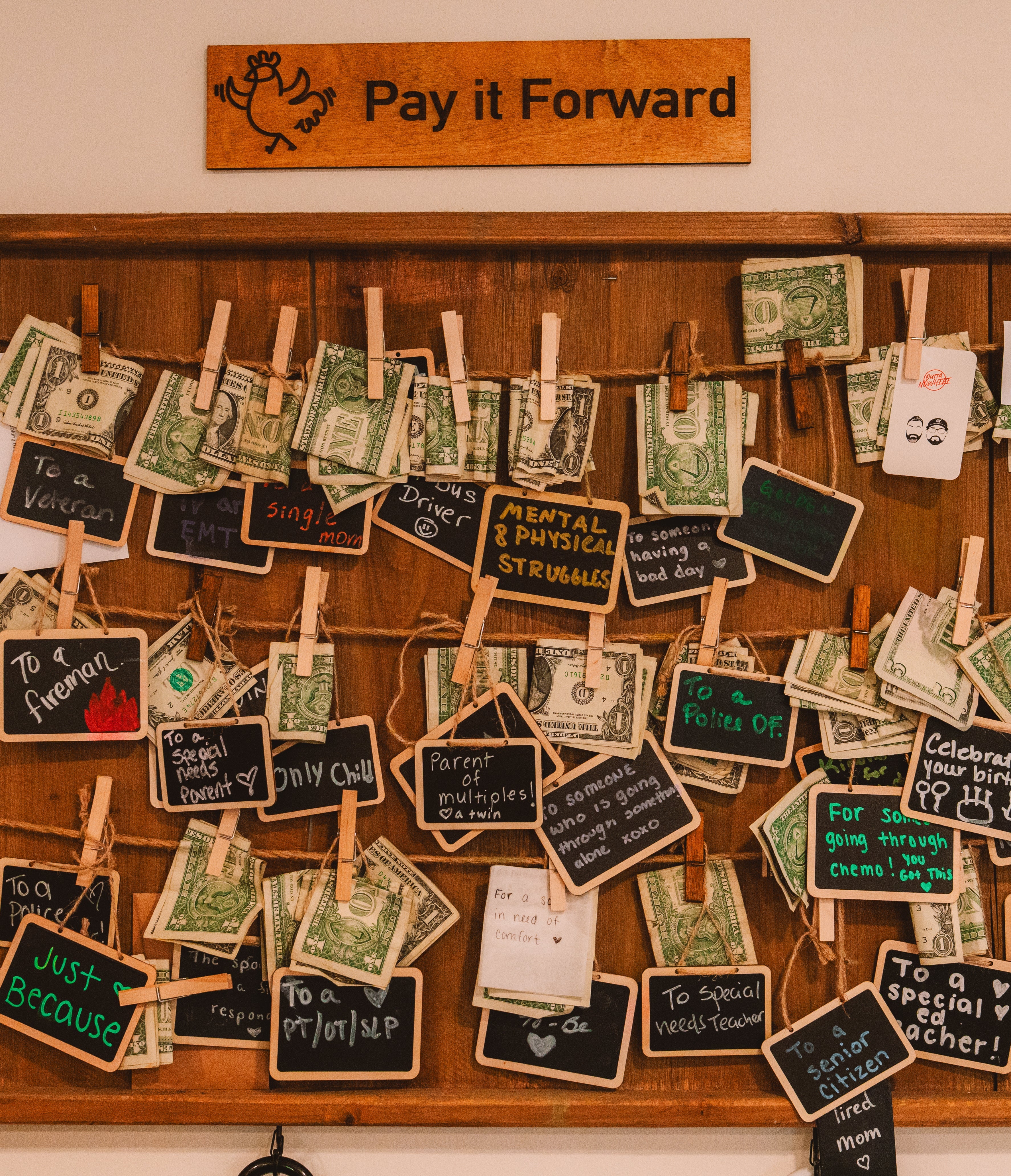 At Roosters, it’s never just about the coffee. It’s about the people. Whether you’re adding a note to our Gratitude Board or leaving a little kindness on the Pay It Forward Wall, you’re part of something bigger here—a place where everyone lifts each other up.